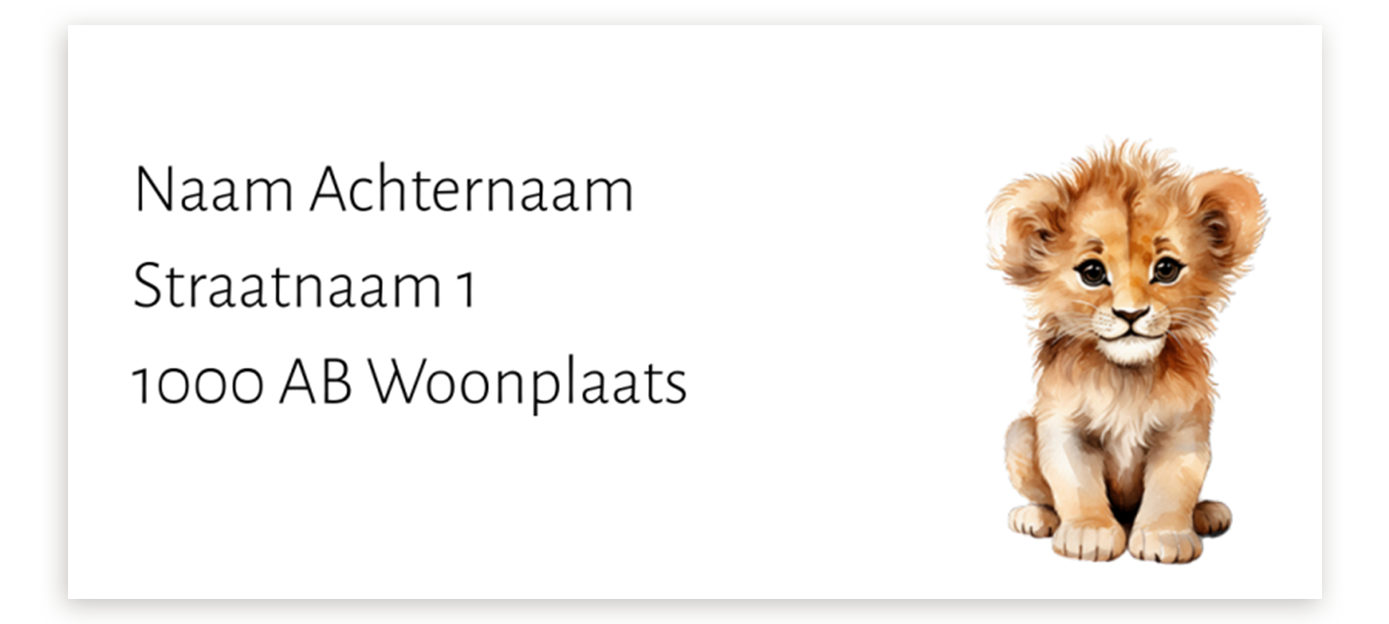 Met een leuke adressticker in de stijl van je geboortekaartje maak je de envelop helemaal af! Je kunt voor elke sticker een uniek adres invullen. Wil je een ander design? Geen probleem, pas het eenvoudig aan in de editor. Elke vel bevat twaalf adresstickers