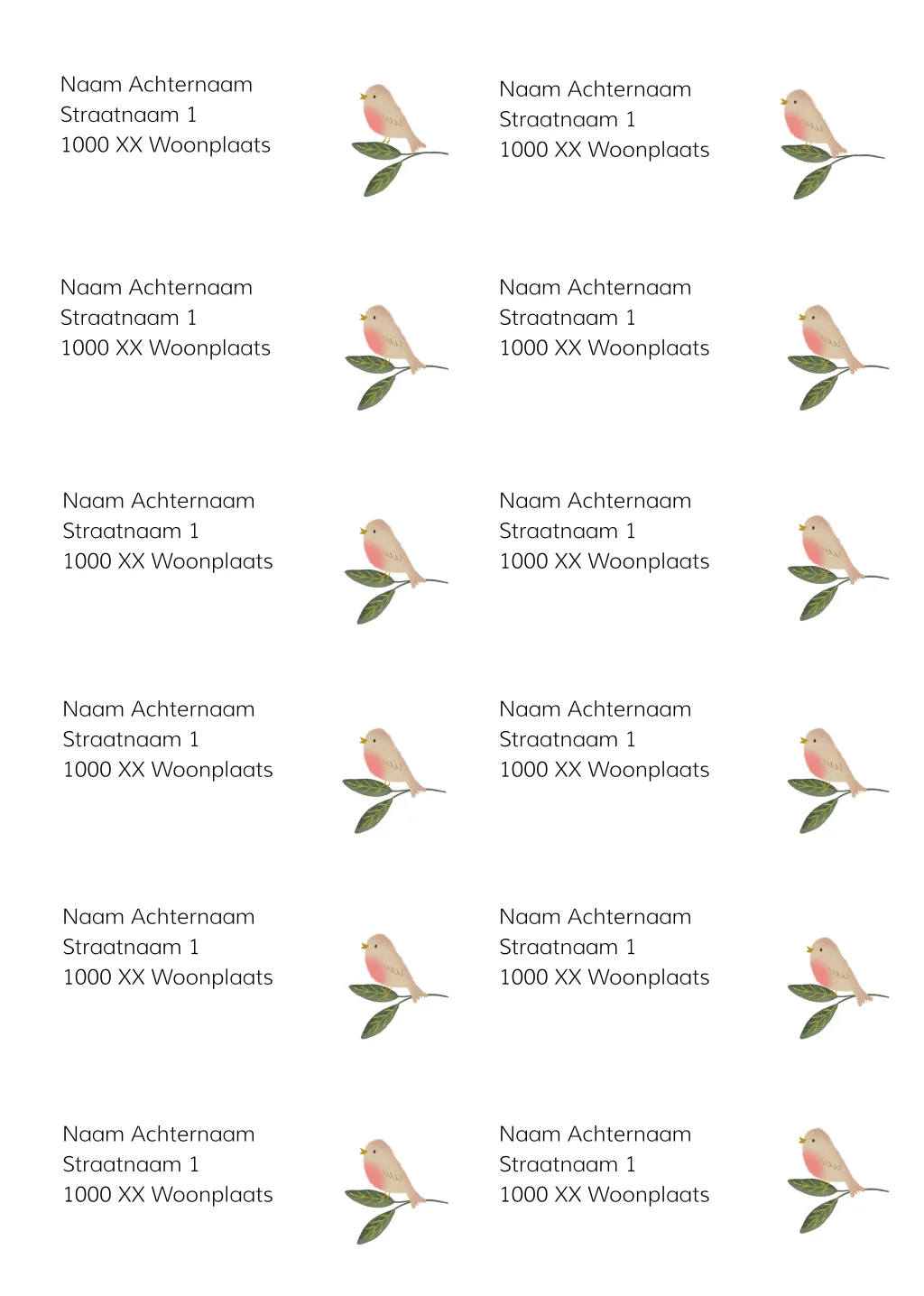 Adresetiket met vogeltje