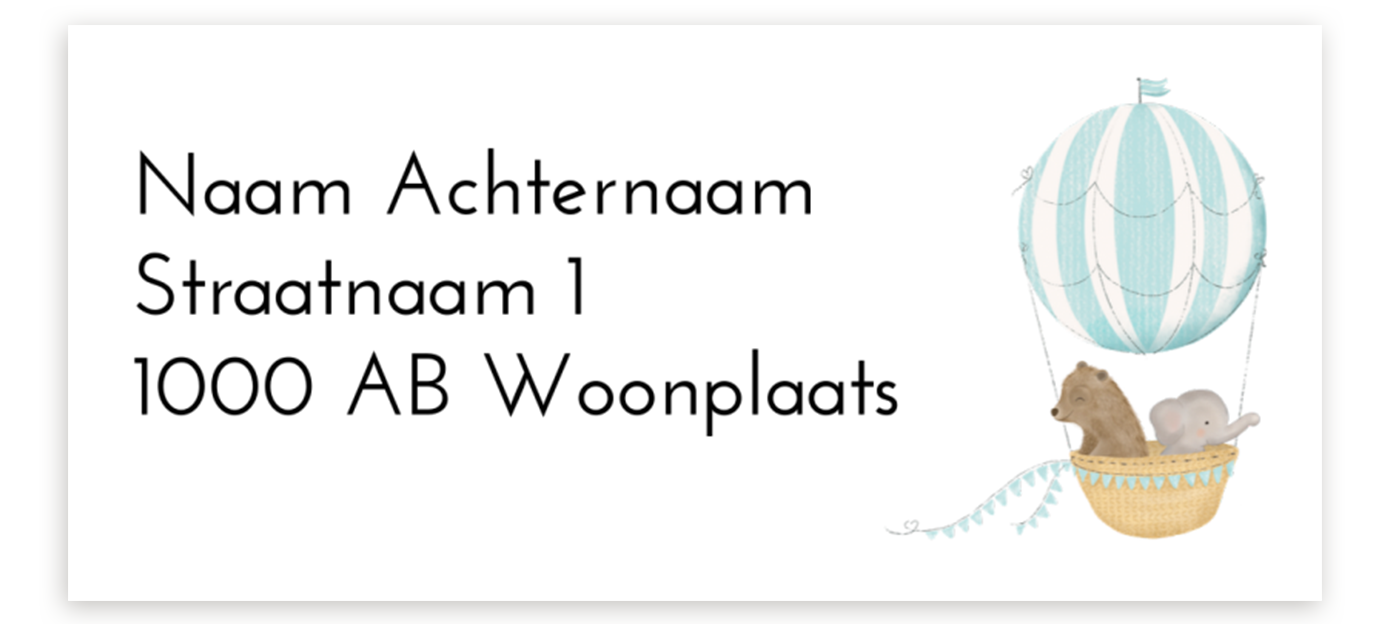 Adressticker met een blauwe luchtballon