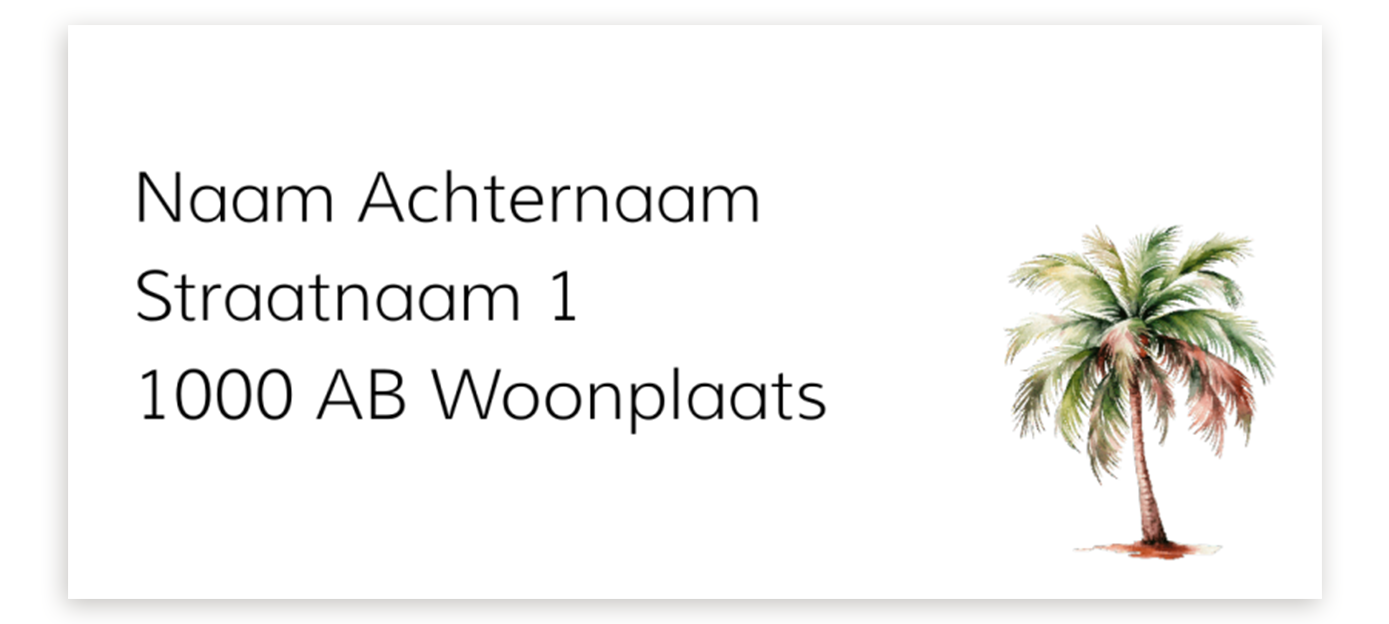 Adressticker met een palmboom