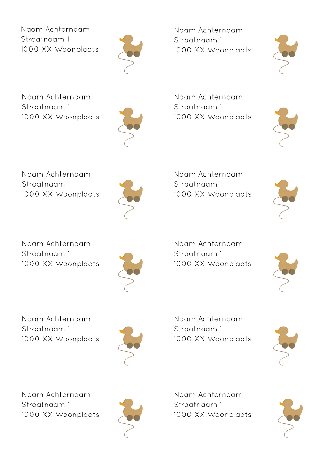 Adressticker met speelgoedeendje