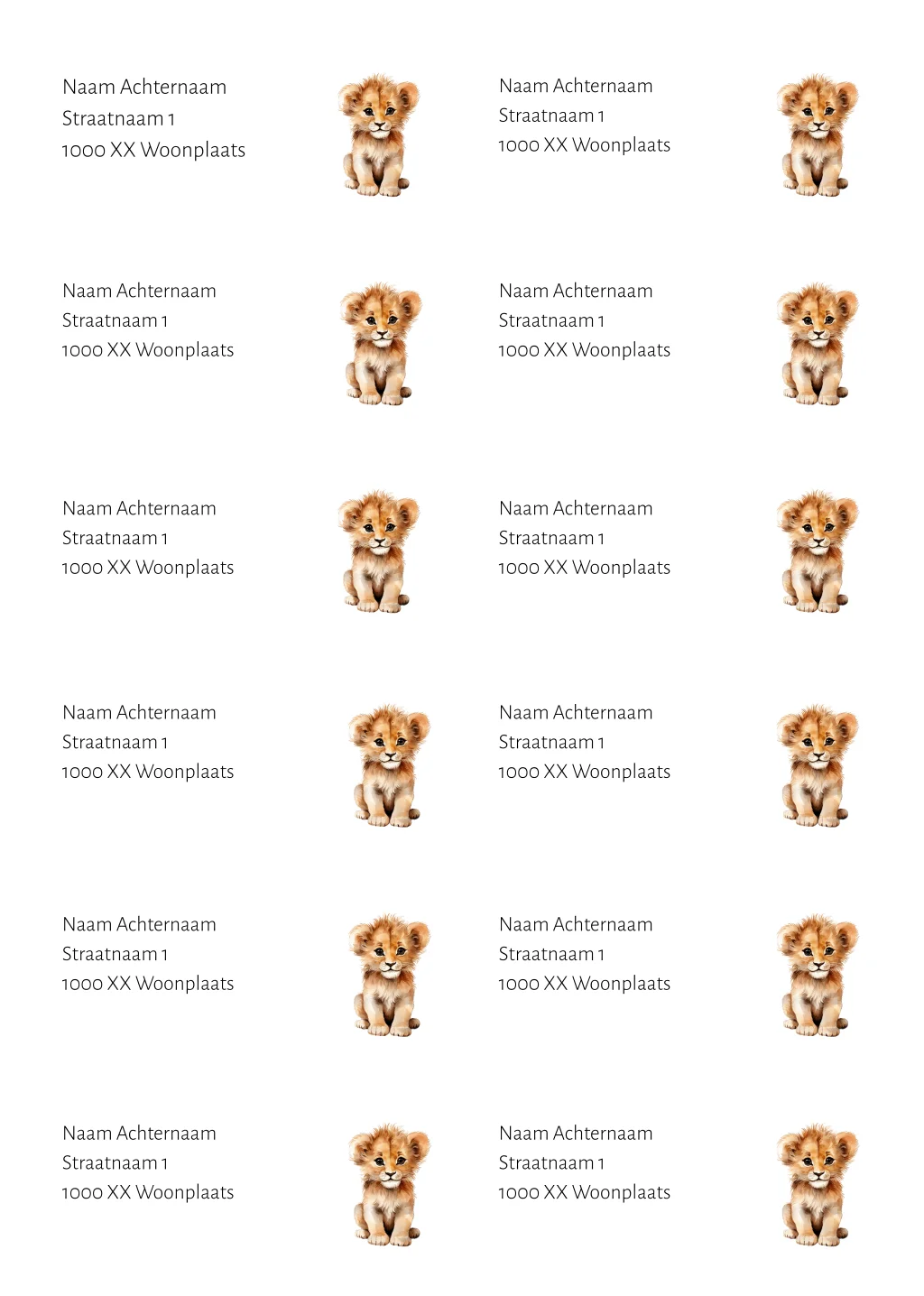 Met een leuke adressticker in de stijl van je geboortekaartje maak je de envelop helemaal af! Je kunt voor elke sticker een uniek adres invullen. Wil je een ander design? Geen probleem, pas het eenvoudig aan in de editor.