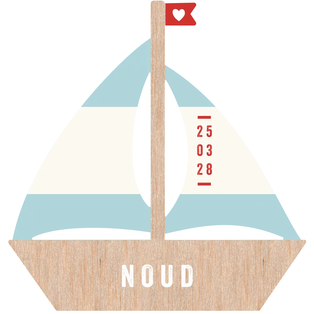 Geboortekaartje in de vorm van een zeilboot