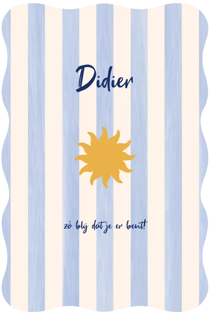 Hip geboortekaartje voor een jongen met originele gegolfde vorm, streeppatroon en een vrolijk zonnetje. Echt een zomers geboortekaartje! - Didier -
