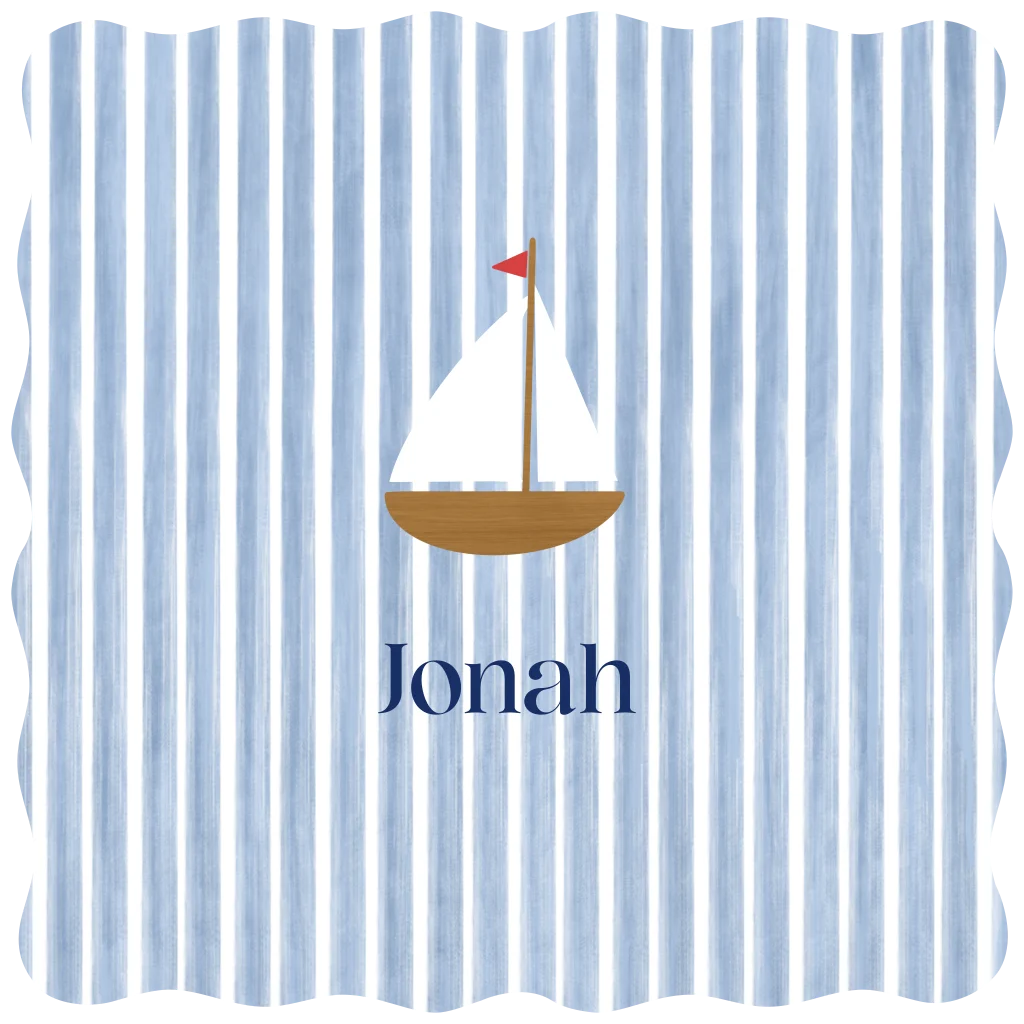 Lief geboortekaartje voor een jongen met fris streepjespatroon en een zeilbootje. Dit kaartje heeft een klassieke twist maar is toch helemaal van nu! - Jonas -