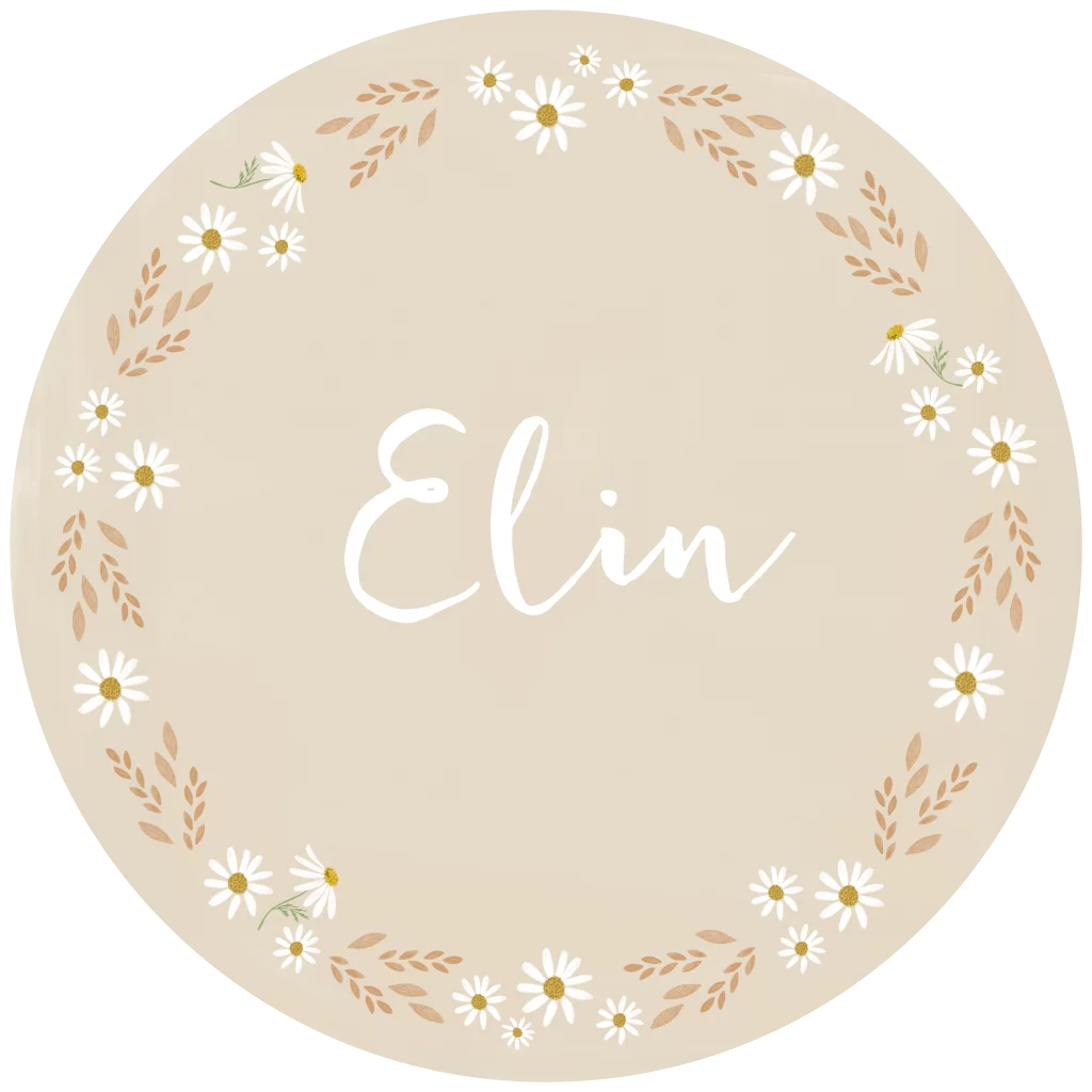 Ronde geboortekaartje voor een meisje met mooie naturel en bruintinten. De madeliefjes en takjes omringen de naam in mooi lettertype. De achterzijde is in een contrasterende kleur die op de voorzijde terugkomt in de takjes. Dit ontwerp is samengesteld uit losse elementen die je zelf kunt verplaatsen. Hulp nodig bij de opmaak van je kaartje? Laat het ons weten, dan helpen we je graag! - Elin -