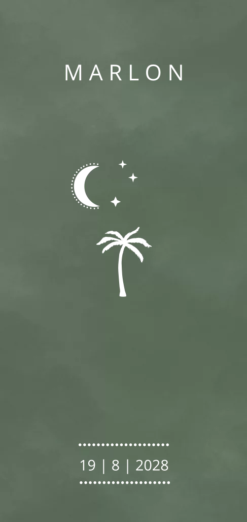 Folie geboortekaartje jongen met palmboom in goudfolie