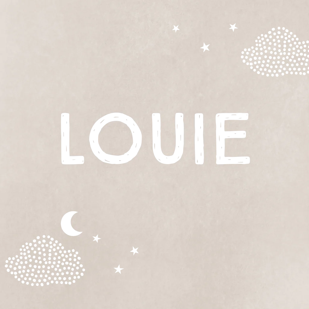 Stoer foliekaartje voor een jongen met zandkleurige achtergrond met structuur effect. De fijne sterretjes en wolkjes met stipjes in goudfolie komen hier prachtig op uit. Deze elementjes komen ook weer terug op de binnen- en achterzijde van het kaartje. Via de editor kun je voor een andere foliekleur kiezen en andere achtergronden kiezen. Zo kun je zelf jouw mooiste kaartje maken!