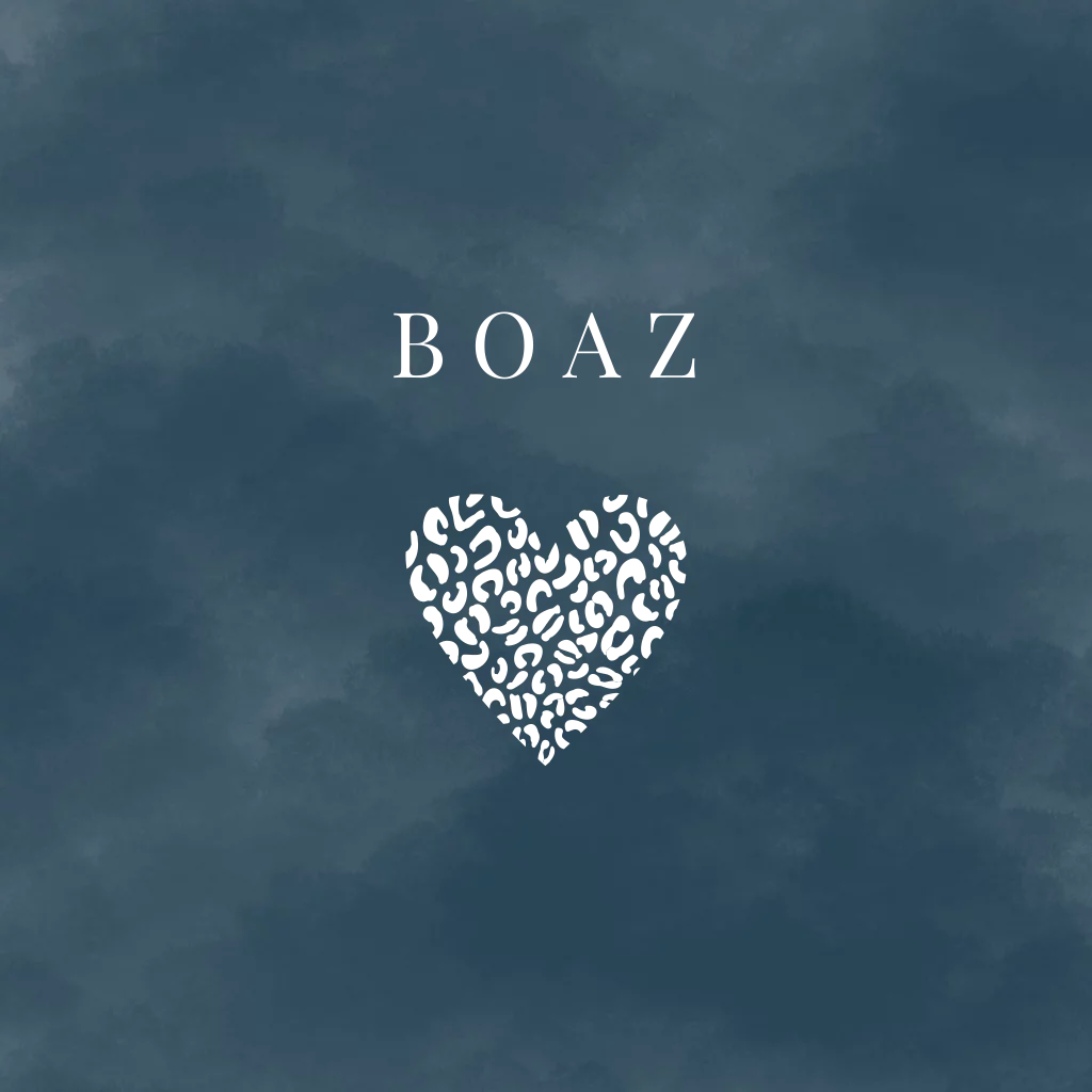 Stijlvol geboortekaartje met donkerblauwe achtergrond met wolkerig effect en daarop de naam en een hartje met panterprint in goudolie. Met de editor kun je dit kaartje helemaal naar eigen smaak aanpassen. Wil je dit kaartje liever op een ander formaat? Laat het ons weten, dan passen wij dit graag voor je aan!