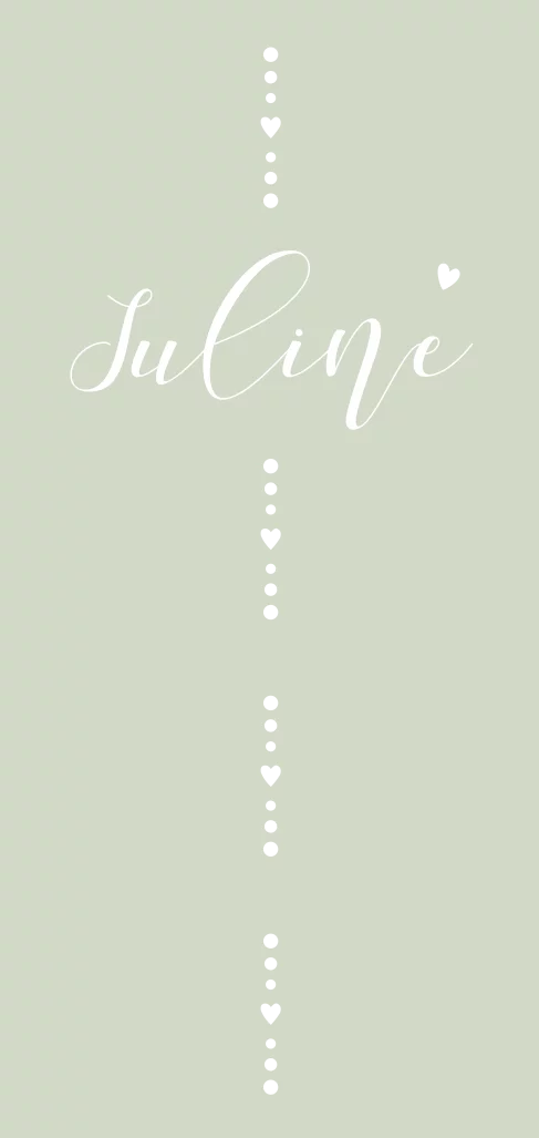 Stijlvol bohemian geboortekaartje voor een meisje. Zachtgroene achtergrond met daarop subtiele versieringen van stippen en hartjes in goudfolie.