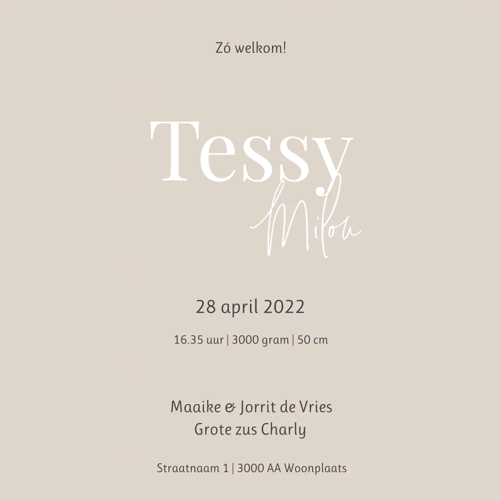 stijlvol folie geboortekaartje met hartje in goudfolie
