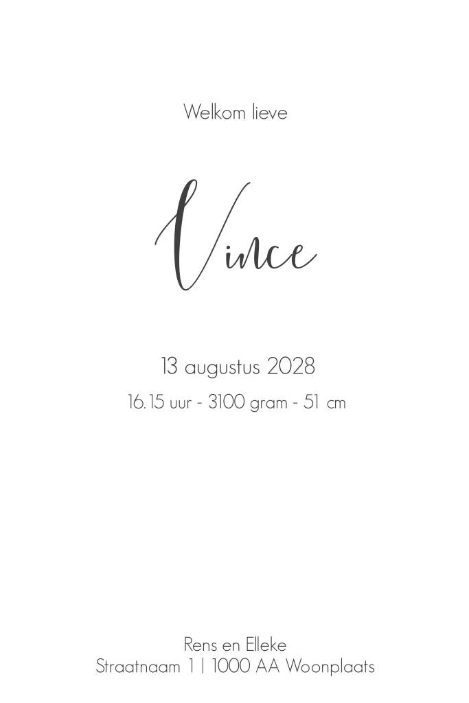 Lief geboortekaartje voor een jongen, met lijntekening van een slapende baby met mutsje in goudfolie. Op de witte achtergrond komt de goudfolie prachtig uit.