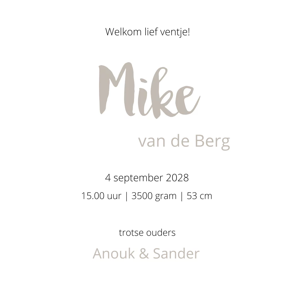 Geboortekaartje met stoere giraffe print en grijs-beige tint. De naam in zilverfolie combineert hier prachtig bij! Natuurlijk kun je ook voor één van de andere 4 folie kleuren kiezen. Wil je op de binnenzijde van het kaartje ook folie? Neem dan even contact op, dan passen we dat voor je aan.