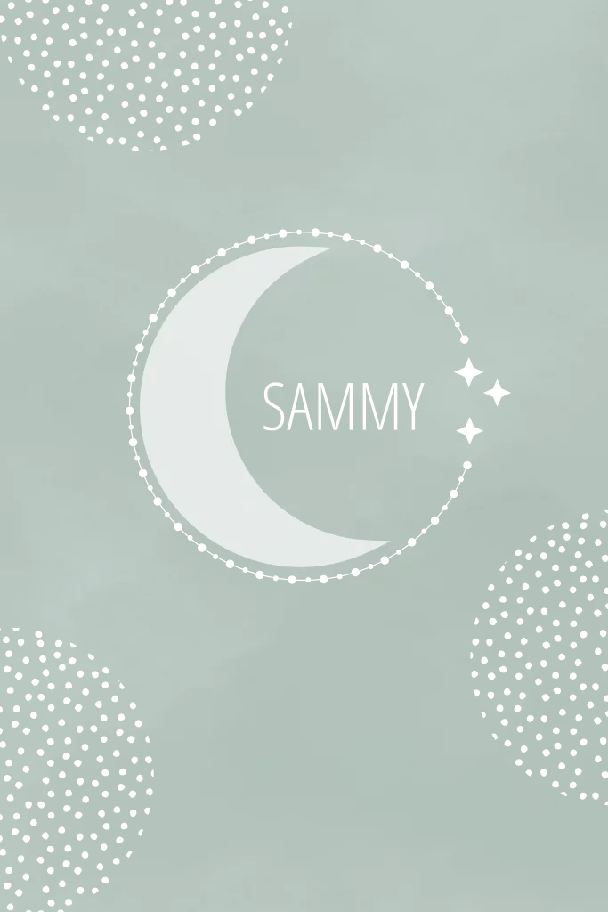 Geboortekaartje met rosé folie op zeegroene achtergrond. De maan en de naam van je kindje staan centraal op dit kaartje. Daaromheen cirkels met stipjes in foliedruk voor een sprankelend effect! Prachtig kaartje dat zowel voor een meisje als een jongen gekozen kan worden. Natuurlijk kun je via de editor elke foliekleur kiezen!