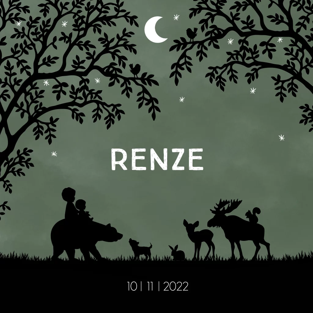 geboortekaart jongen met silhouet broertjes bosdieren bomen