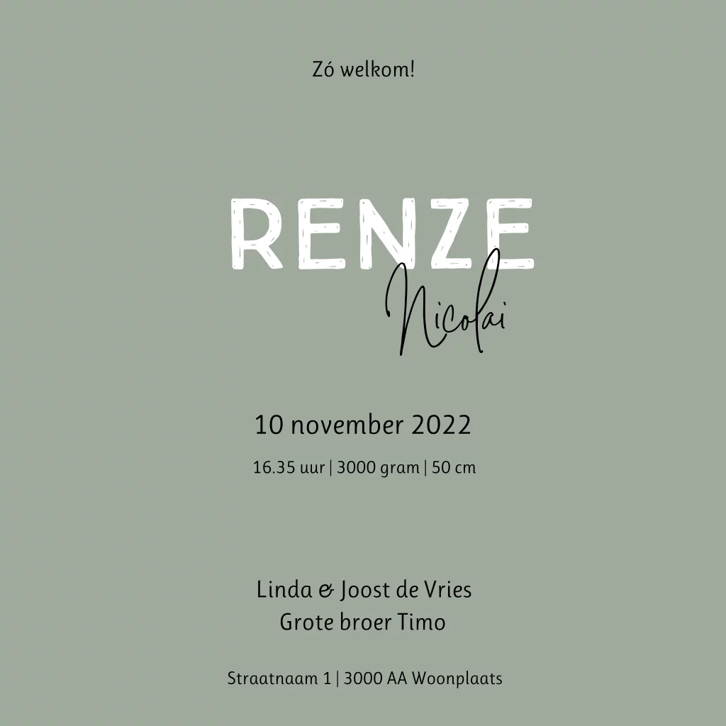 Dit kaartje is helemaal naar wens aan te passen via de editor. Kies je favoriete kleuren, lettertypes en voeg beelden toe uit onze uitgebreide beeldbank.