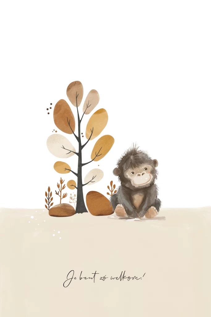 Origineel en stoer geboortekaartje voor een zoon, met grappige illustratie van een kleine gorilla en naam in goudfolie. - Thygo -