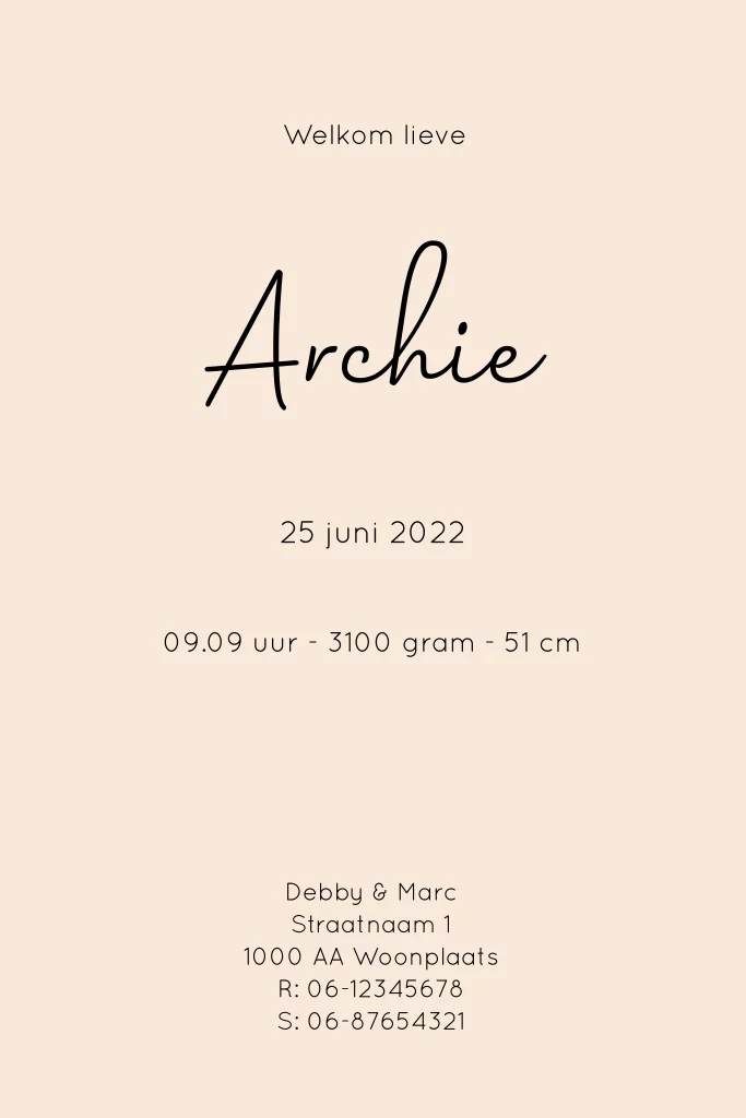 Vrolijk geboortekaartje voor een jongen, met jungledieren omringd door tropische bladeren. De illustraties zijn allemaal losse beelden, dus je kunt het kaartje helemaal naar wens indelen en aanpassen. - Archie -