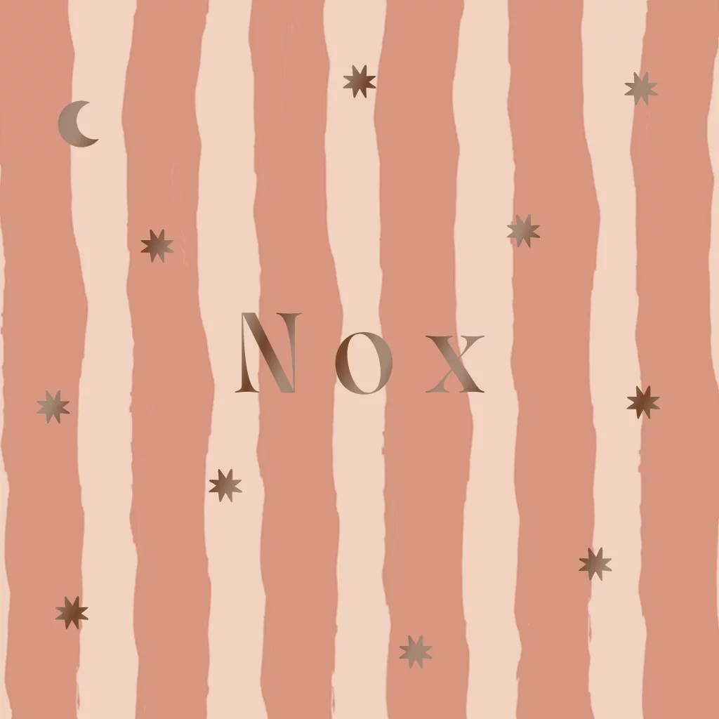 Hip geboortekaartje voor een jongen met stoer streepmotief en sprankelende sterretjes. De sterren en de naam zijn uitgevoerd in hoogglans. - Nox -