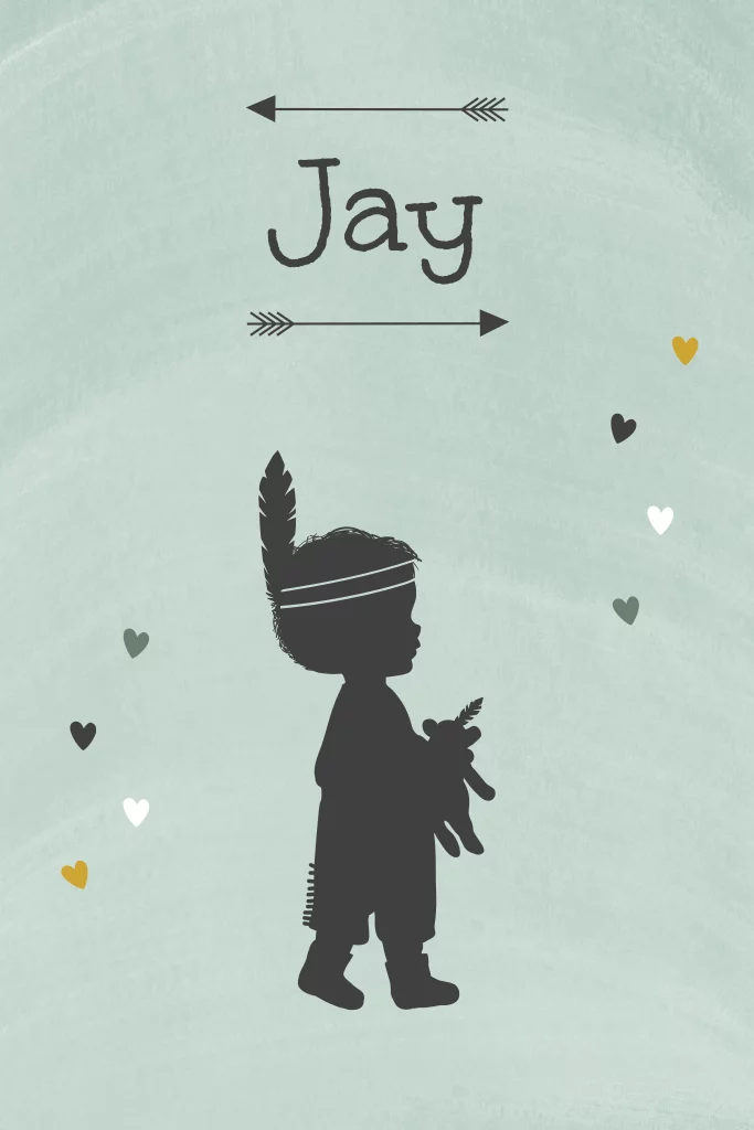 stoer geboortekaartje jongen met silhouet van kleine indiaan