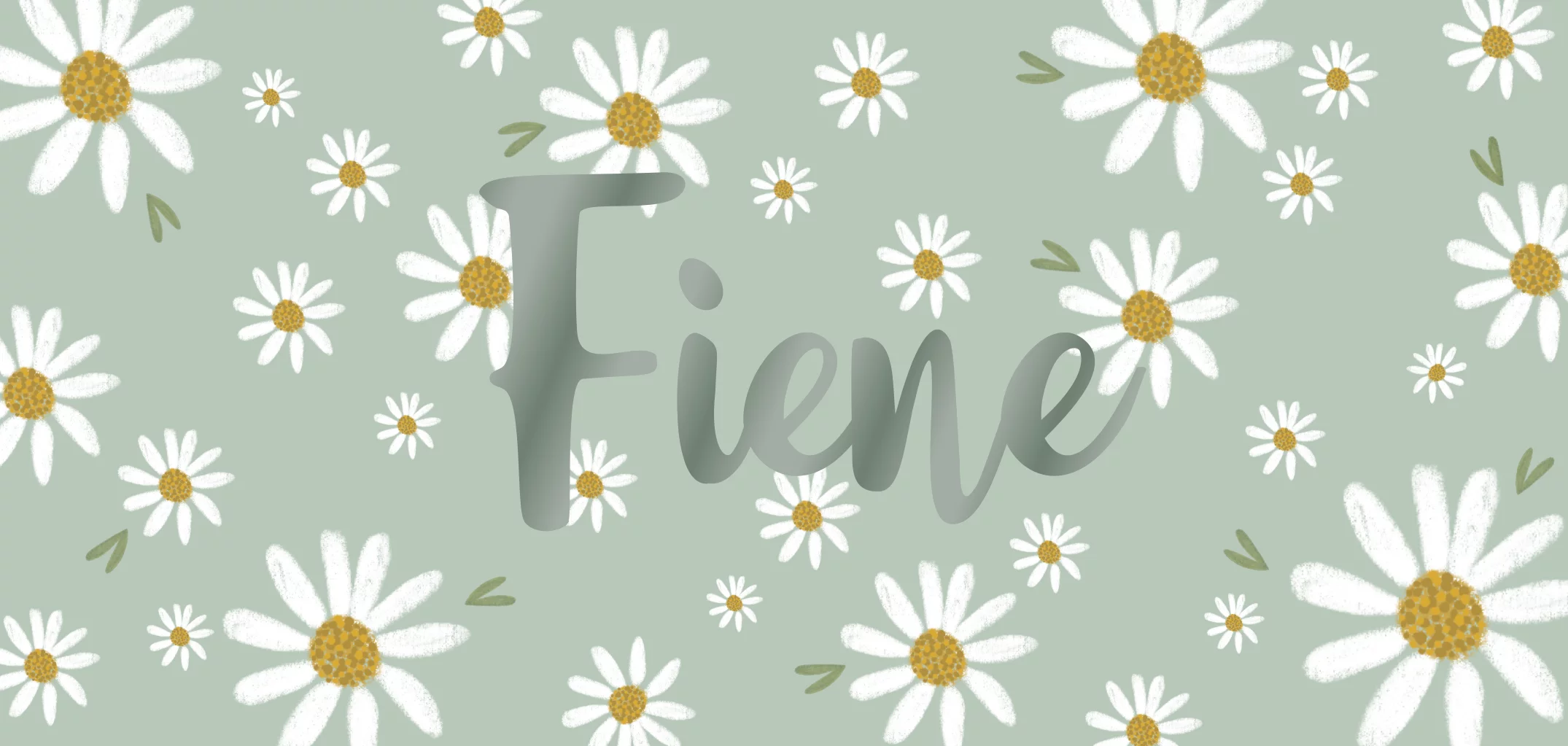 Vrolijk geboortekaartje voor een meisje met madeliefjes en de naam op de voorzijde in spot-uv lak.