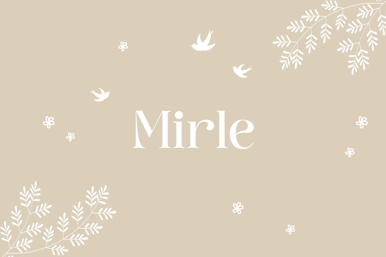 Neutraal geboortekaartje in mooie beige kleur met takjes, vogeltjes en naam in goudfolie. - Mirle -