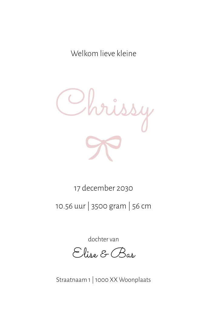 Geboortekaartje meisje met strepen en strikje