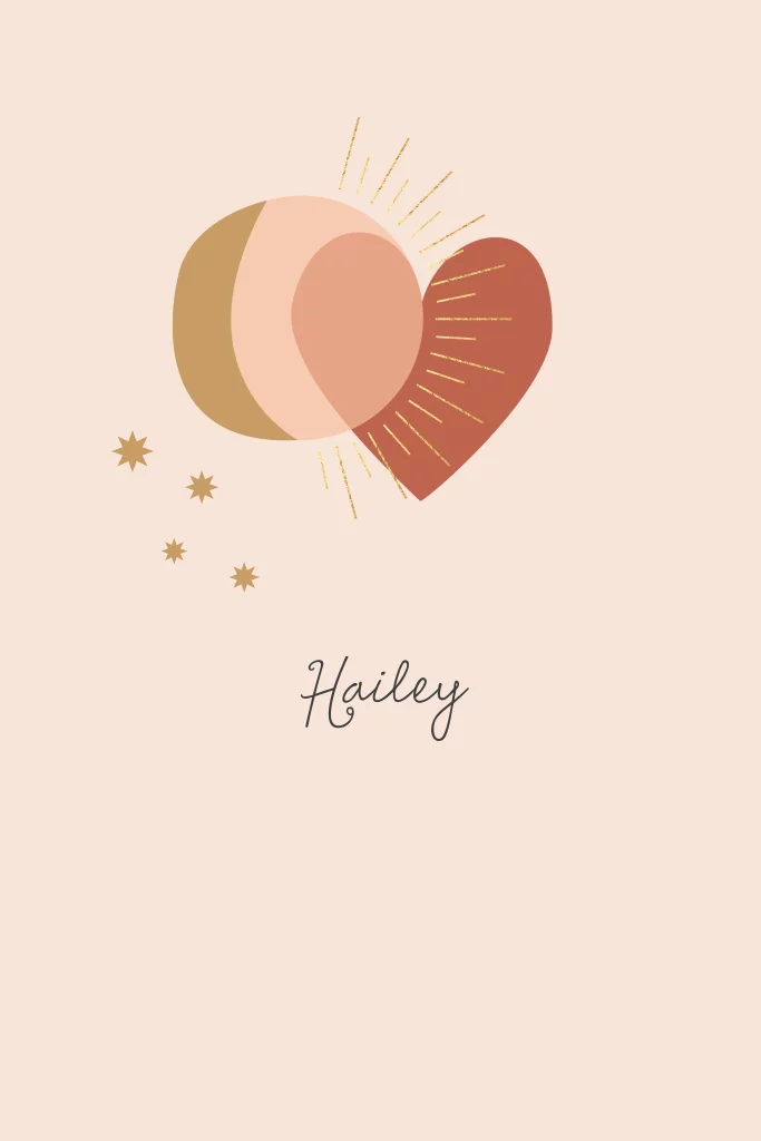 Trendy geboortekaartje voor een meisje met illustratie van een stralende maan, vrolijke sterretjes en een hart in mooie terra tint. De kleurstelling van verschillende aardetinten zijn helemaal van nu.