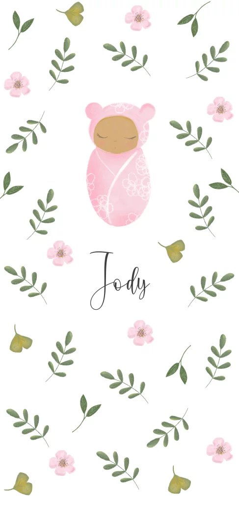 geboortekaartje met babymeisje ingebakerd en bloemenpatroon