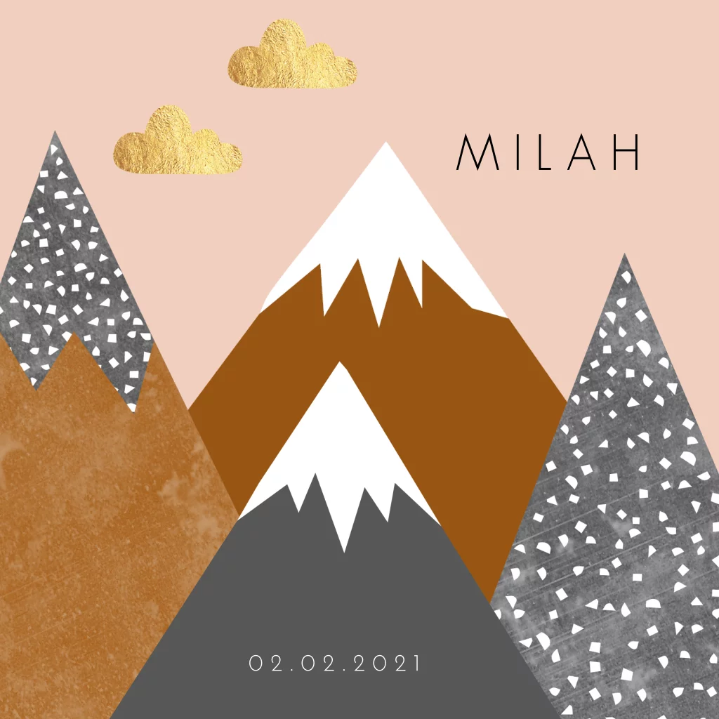 Stoer geboortekaartje voor een meisje in hippe trendkleuren en een 'touch of gold'.