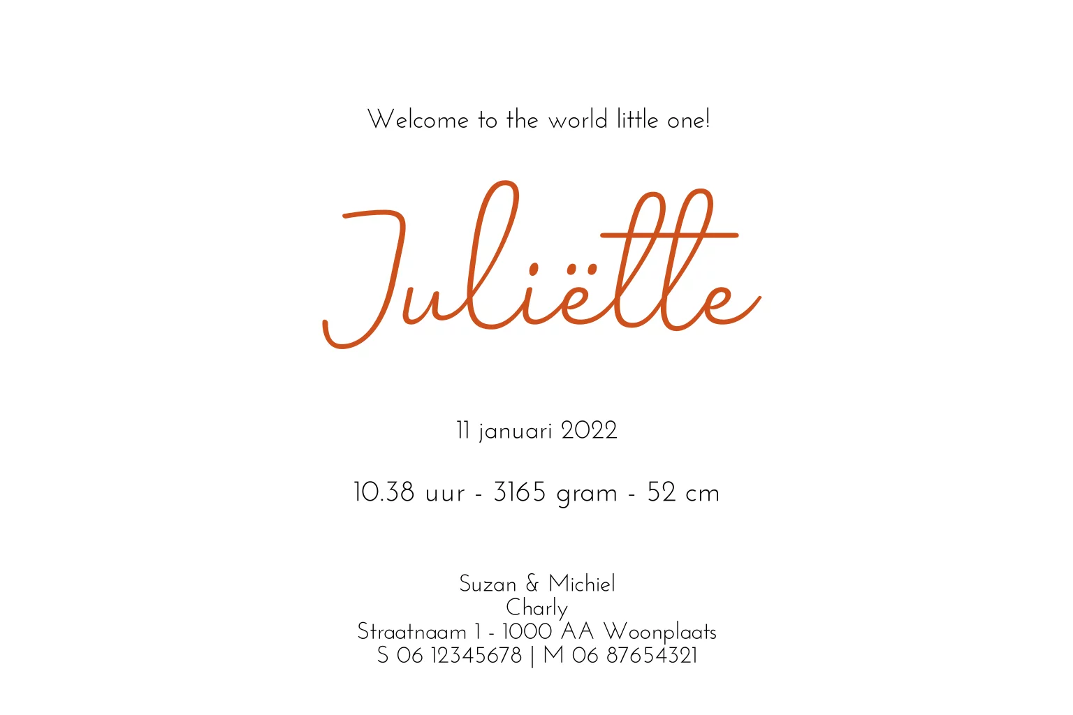 Een lief geboortekaartje die zowel voor een jongen als een meisje kan.