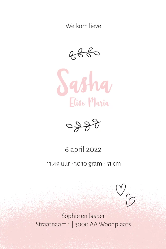 lief geboortekaartje meisje met grote en kleine beer