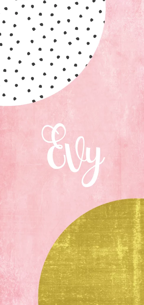 Meisjes geboortekaartje met 'geschuurde' achtergrond in roze en daarop kwart cirkels met stipjes en goudachtige structuur. Eenvoudig en heel mooi!