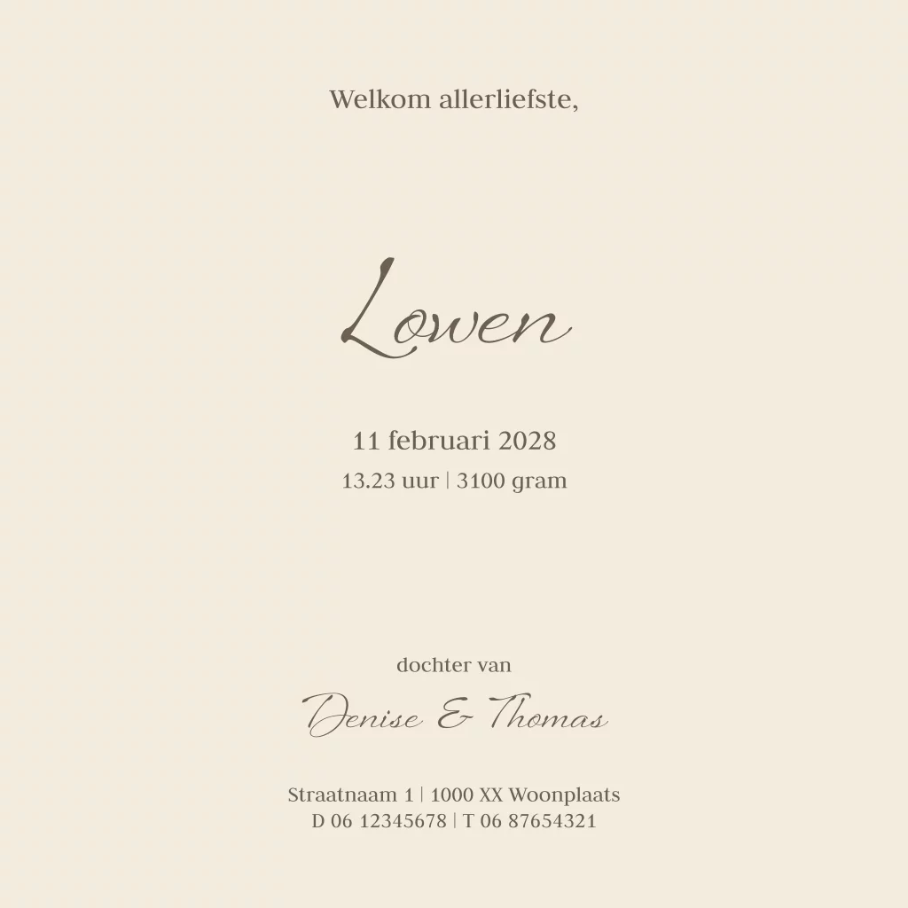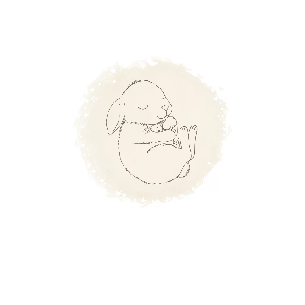 Neutraal geboortekaartje met lijntekening van slapend konijntje