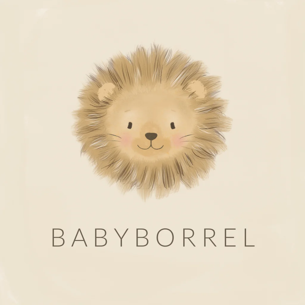 Kraamborrelkaartje met een illustratie van een leeuwenkopje in de stijl van kaartje Oscar.