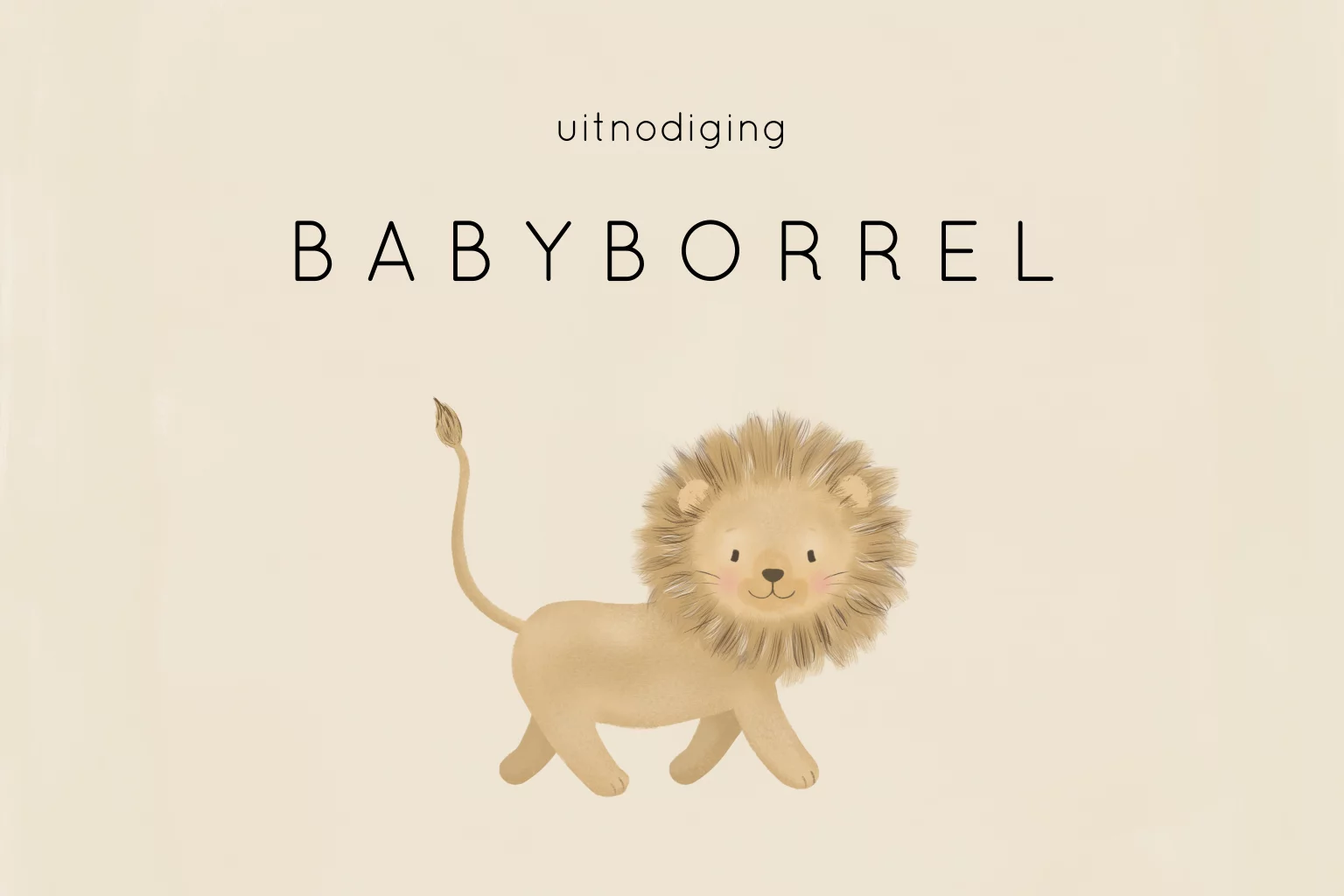 Kraamborrelkaartje met illustratie van een welpje, in de stijl van geboortekaartje Fender.