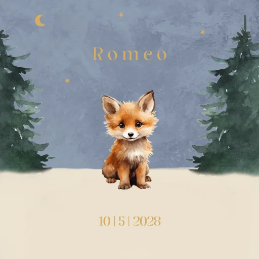 Geboortetegel met een lief vosje in de stijl van geboortekaartje Romeo.